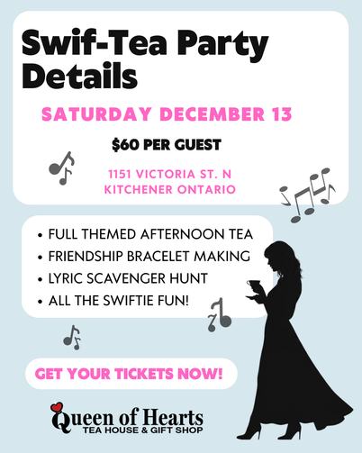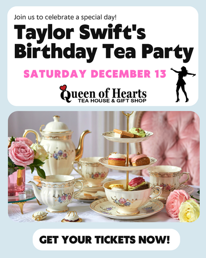 Join us on Saturday December 13th to celebrate Taylor's birthday with a Swift-TEA party! The party will start at 1:30pm and end at 3pm. (The 11am seating is sold out)