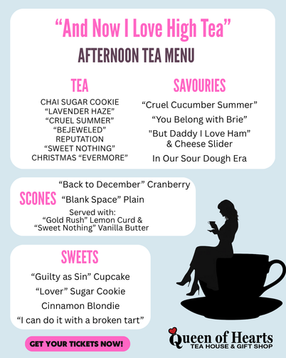 Dress in your favourite era, bring your besties, and get ready for an unforgettable afternoon of tea, tunes, and Swiftie-inspired treats.